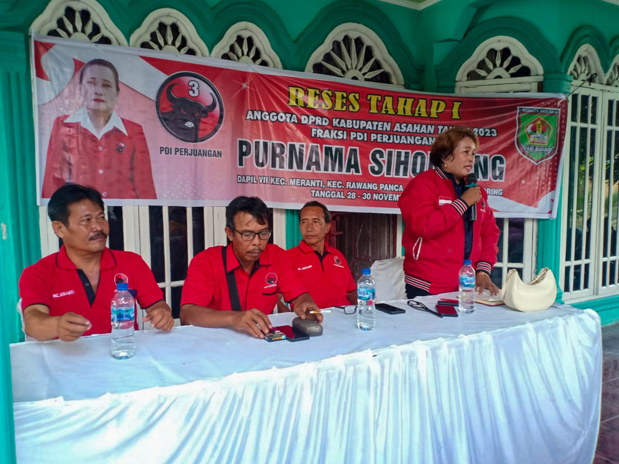 ASAHAN - Anggota DPRD Kabupaten Asahan Purnama Sihombing melaksanakan Reses Tahap I Tahun Anggaran 2023 Masa Persidangan ke I, di Kecamatan Meranti pada Kamis (30/11/2023).