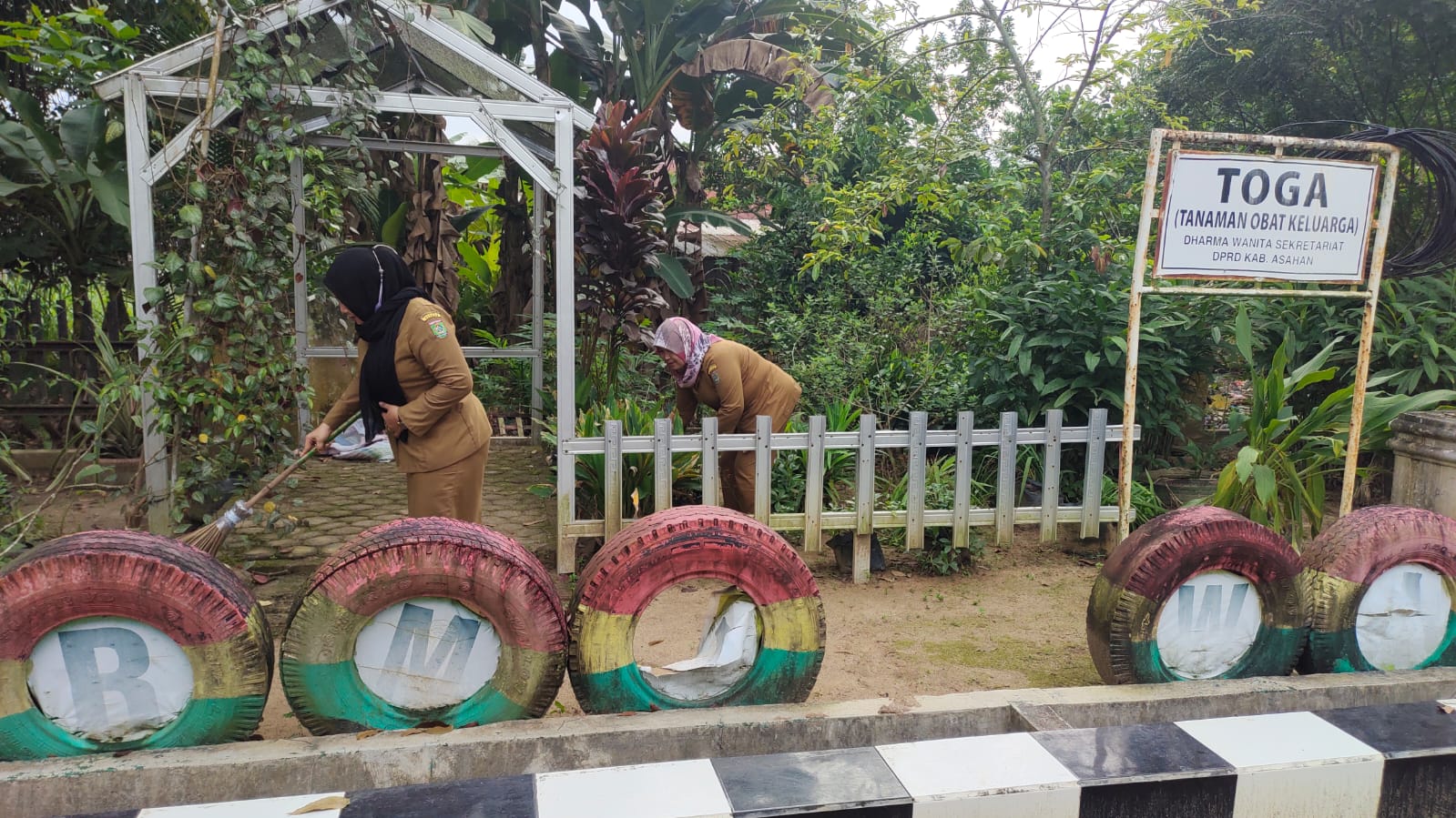 ANGGOTA DWP UP SEKRETARIAT DPRD ASAHAN MELAKUKAN PERAWATAN RUTIN TANAMAN TOGA
