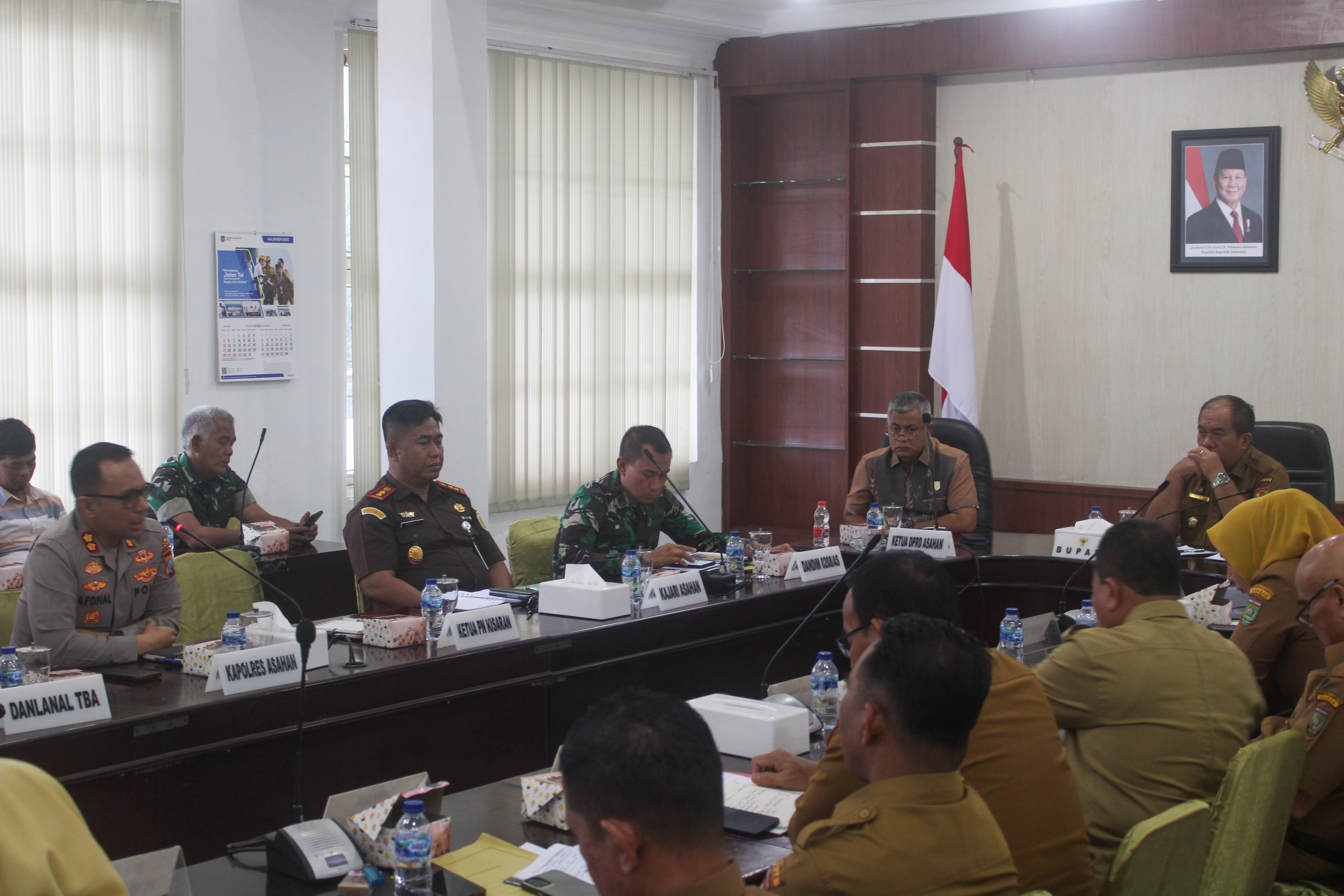 Dalam rapat yang dipimpin langsung oleh Bupati Asahan, turut hadir Wakil Bupati Asahan, Kapolres Asahan, Kajari Asahan, Dandim 0208/Asahan, Ketua PN Kisaran, mewakili Danlanal TBA, Sekretaris Daerah Kabupaten Asahan, Para Asisten, OPD, Pimpinan Perusahaan dan tamu undangan lainnya.