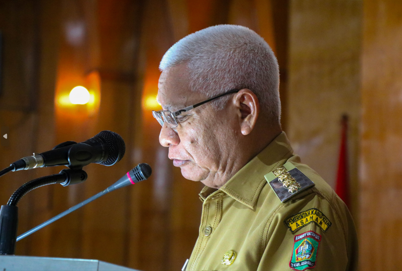KISARAN - DPRD Kabupaten Asahan menggelar Rapat Paripurna dalam acara Penyampaian Ranperda tentang Pertanggungjawaban Pelaksanaan APBD Kabupaten Asahan Tahun Anggaran 2023 oleh Bupati Asahan di Aula Rambate Rata Raya, lantai dua Kantor DPRD Kabupaten Asahan pada Senin (10/6/2024).