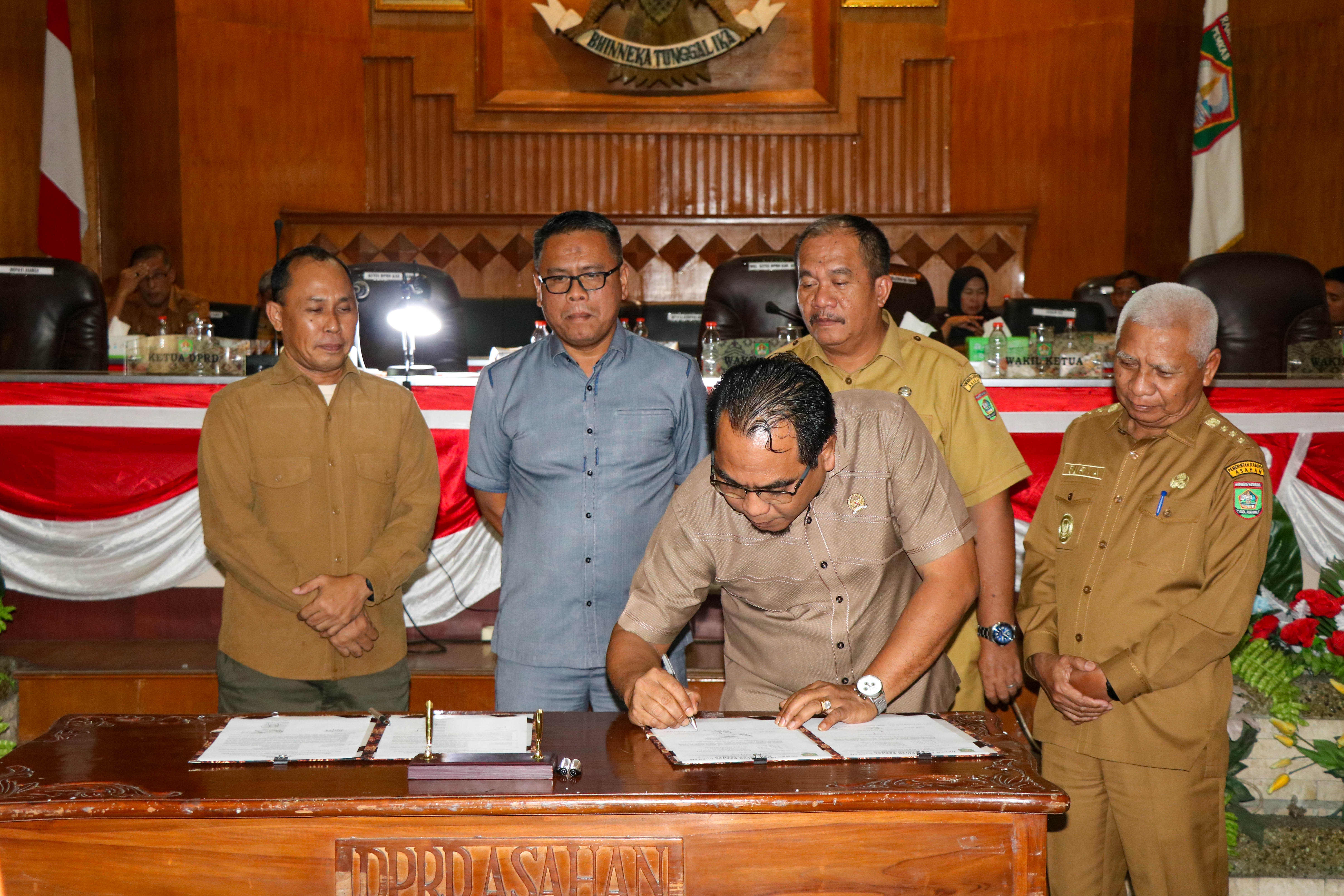 KISARAN - DPRD Kabupaten Asahan menggelar Rapat Paripurna dalam acara Penyampaian Pendapat Akhir Fraksi-Fraksi DPRD Kabupaten Asahan dan Pengambilan Keputusan terhadap Rancangan Peraturan Daerah (RANPERDA)tentang Anggaran Pendapatan dan Belanja Daerah (APBD) Kabupaten Asahan Tahun Anggaran 2024 serta Sambutan Bupati Asahan pada Senin (27/11/2023), di Aula Rambate Rata Raya, lantai dua Kantor DPRD Kabupaten Asahan.