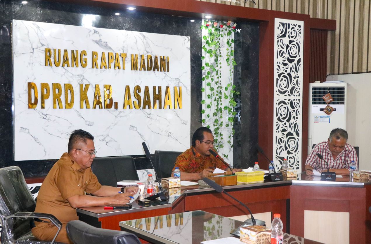 KISARAN - Badan Musyawarah DPRD Kabupaten Asahan menggelar rapat dalam acara membicarakan jadwal kegiatan DPRD Kabupaten Asahan untuk bulan Juni 2024 bersama dengan TAPD Pemerintah Kabupaten Asahan serta unsur Sekretariat DPRD Kabupaten Asahan pada Senin (3/6/2024) di ruang rapat Madani lantai satu kantor DPRD Kabupaten Asahan.