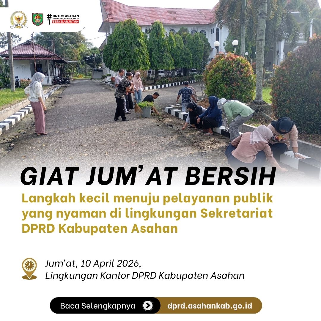 Kisaran, dprd.asahankab.go.id Dalam upaya mewujudkan lingkungan kerja yang asri dan meningkatkan kualitas pelayanan publik, jajaran Aparatur Sipil Negara (ASN) dan non-ASN di lingkungan Sekretariat DPRD Kabupaten Asahan melaksanakan kegiatan gotong royong "Jum’at Bersih" pada Jum’at (10/04/2026).
