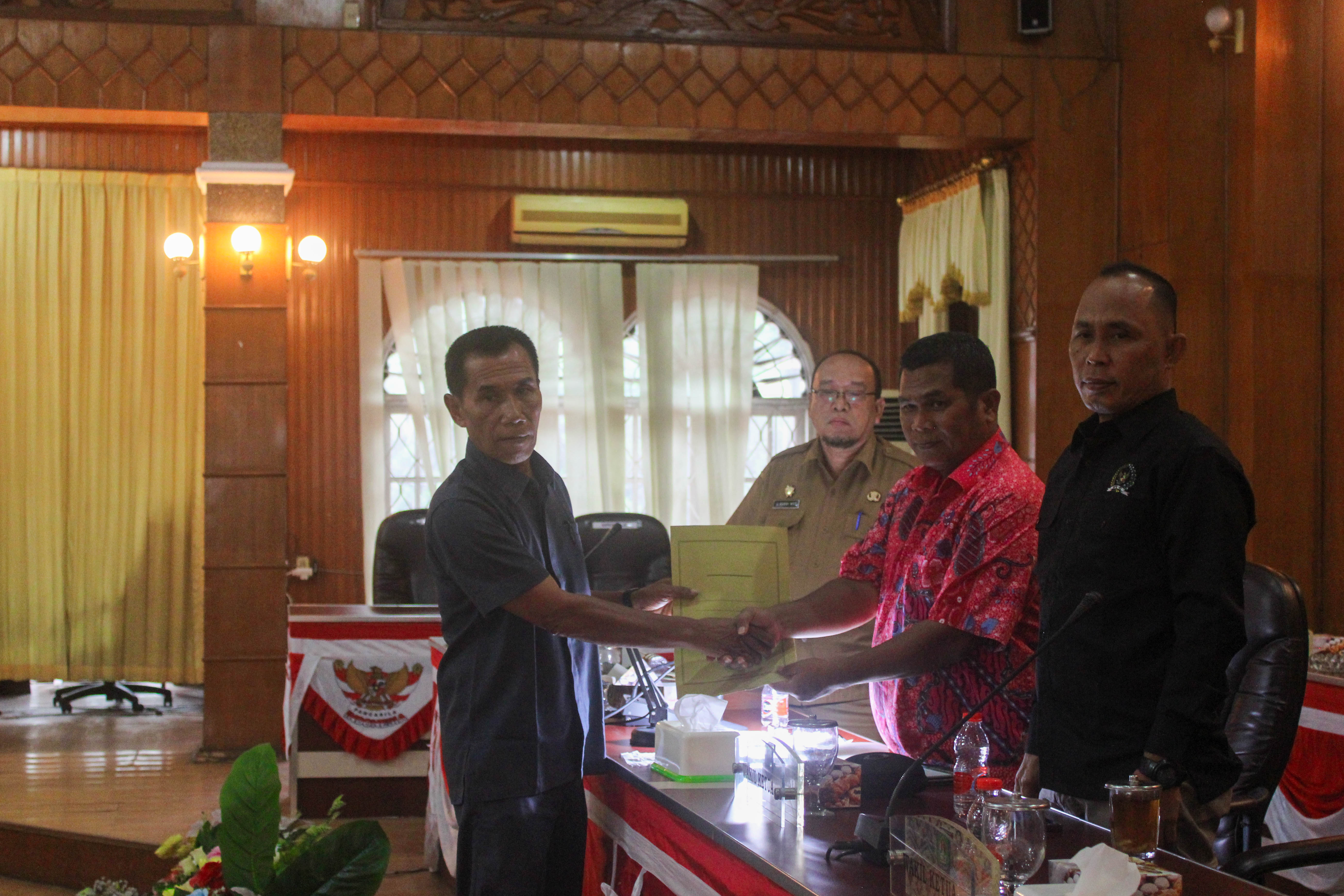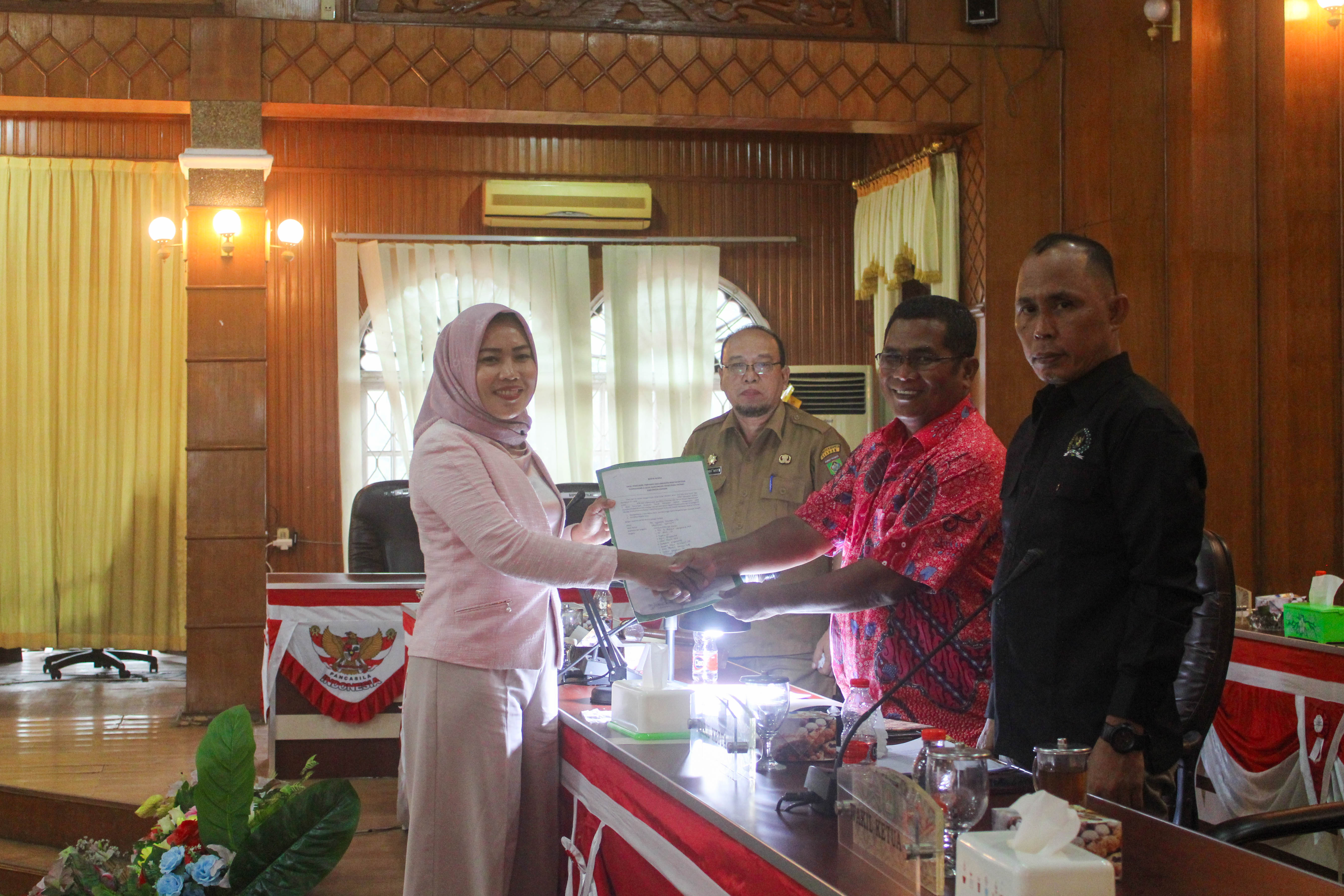 Rapat Paripurna diakhiri dengan penyerahan materi pembahasan Ranperda Kabupaten Asahan kepada perwakilan Pansus untuk selanjutnya dilakukan pembahasan bersama dengan mitra kerja dan tim pakar.