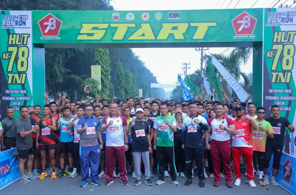 KISARAN - Ketua DPRD Kabupaten Asahan H. Baharuddin Harahap, SH, MH menghadiri Fun Run yang digelar Kodim 0208/Asahan di depan Markas Kodim 0208/Asahan dalam rangka Hari Ulang Tahun (HUT) ke-78 TNI, pada hari Minggu (08/10/2023).