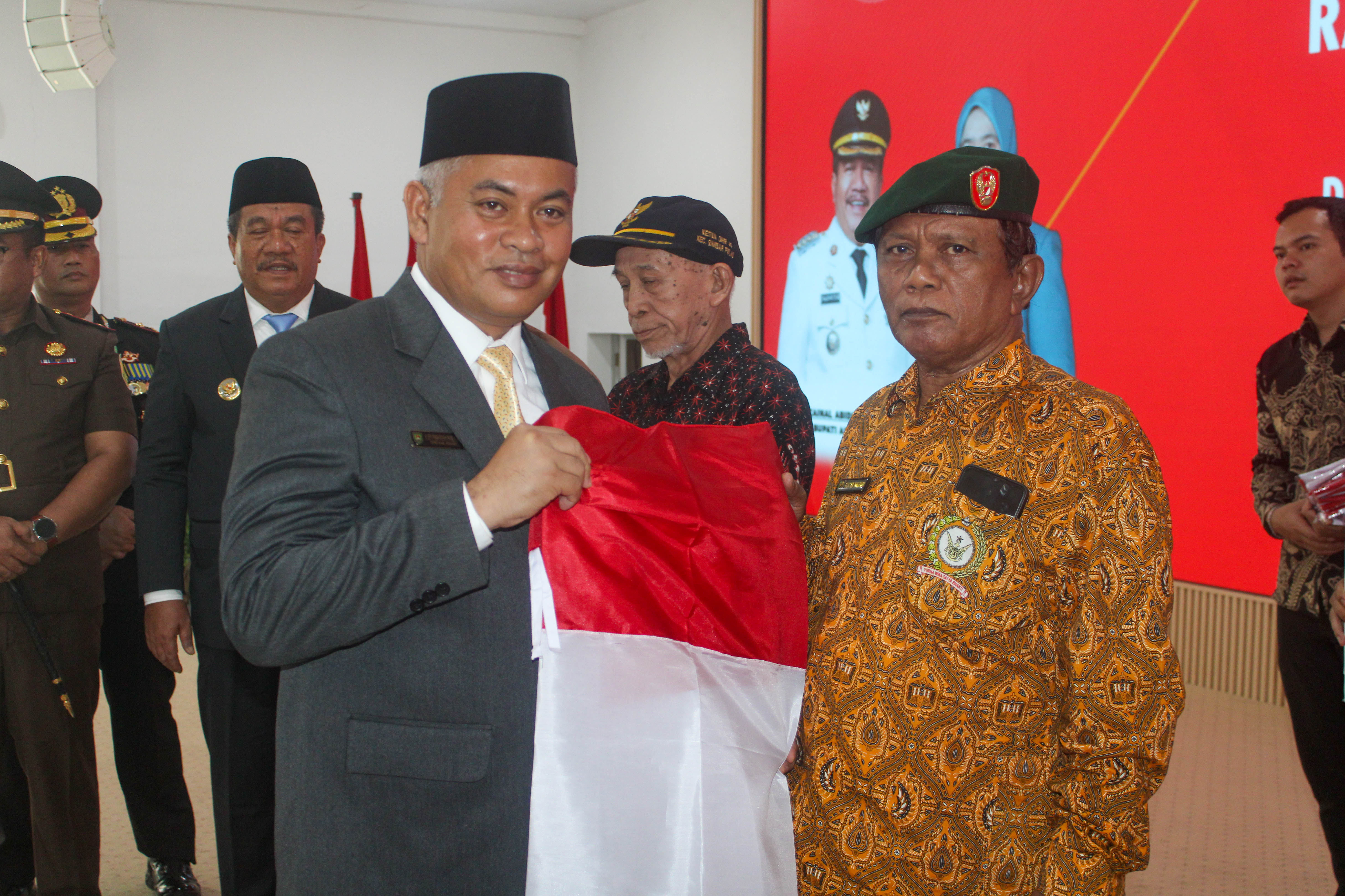 Acara yang berlangsung khidmat ini diisi dengan pemberian bingkisan secara simbolis kepada para perintis kemerdekaan dan veteran sebelum ditutup dengan sesi foto bersama.