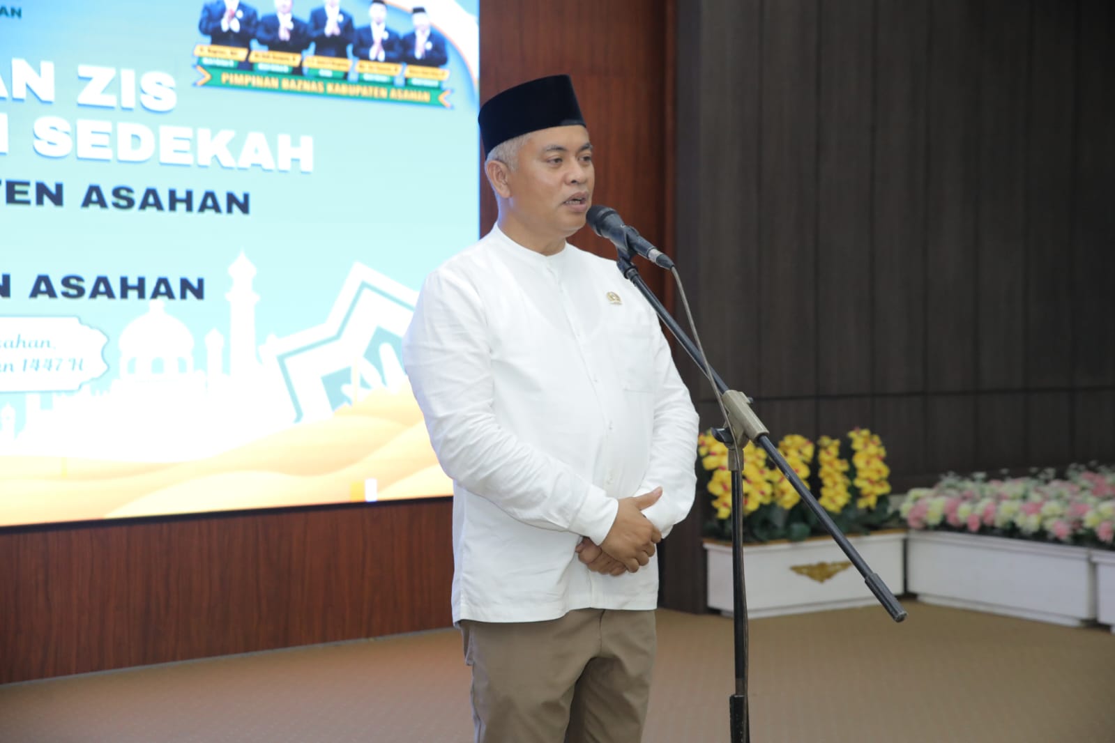 Kisaran, dprd.asahankab.go.id - Ketua DPRD Kabupaten Asahan, H. Efi Irwansyah Pane, M.K.M., menghadiri kegiatan Penyerahan Zakat, Infaq, dan Sedekah (ZIS) kepada Badan Amil Zakat Nasional (BAZNAS) Kabupaten Asahan yang dipusatkan di Pendopo Rumah Dinas Bupati Asahan, Senin (16/03/2026).