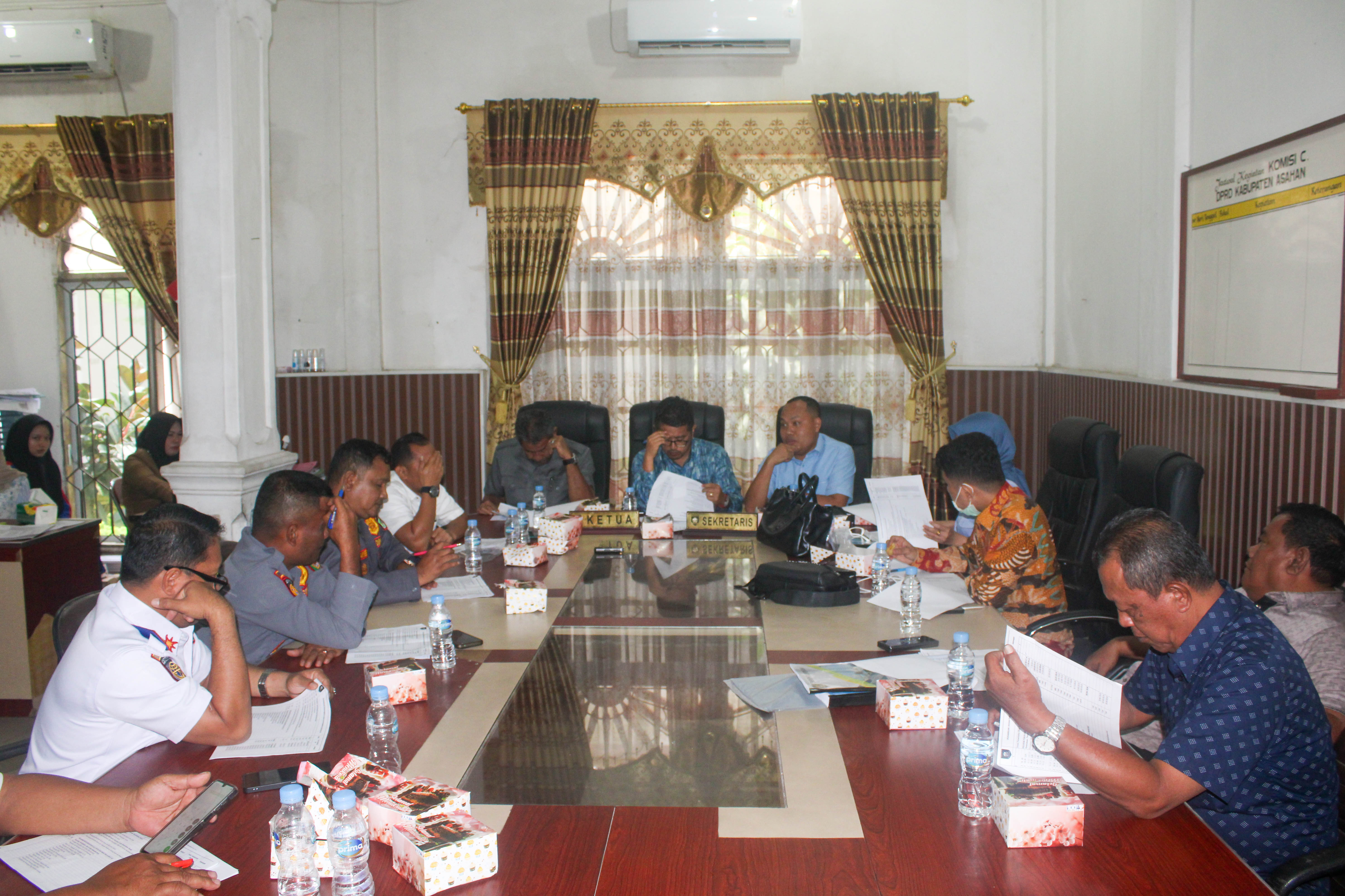 Rapat dipimpin langsung oleh Ketua Komisi C, Kiki Komeni, S.E., didampingi oleh Koordinator Komisi C, Rosmansyah, STP., Wakil Ketua Komisi C, Zaharuddin, S.E., dan Sekretaris Komisi C, Satria Bakti Sihombing, S.H., M.H., serta diikuti oleh Anggota Komisi C DPRD Kabupaten Asahan. Rapat tersebut turut mengundang Badan Pendapatan Daerah, Dinas Pekerjaan Umum dan Tata Ruang, Dinas Perpustakaan dan Arsip, Dinas Perhubungan, Dinas Perikanan, dan Dinas Kependudukan dan Pencatatan Sipil serta pihak terkait lainnya.