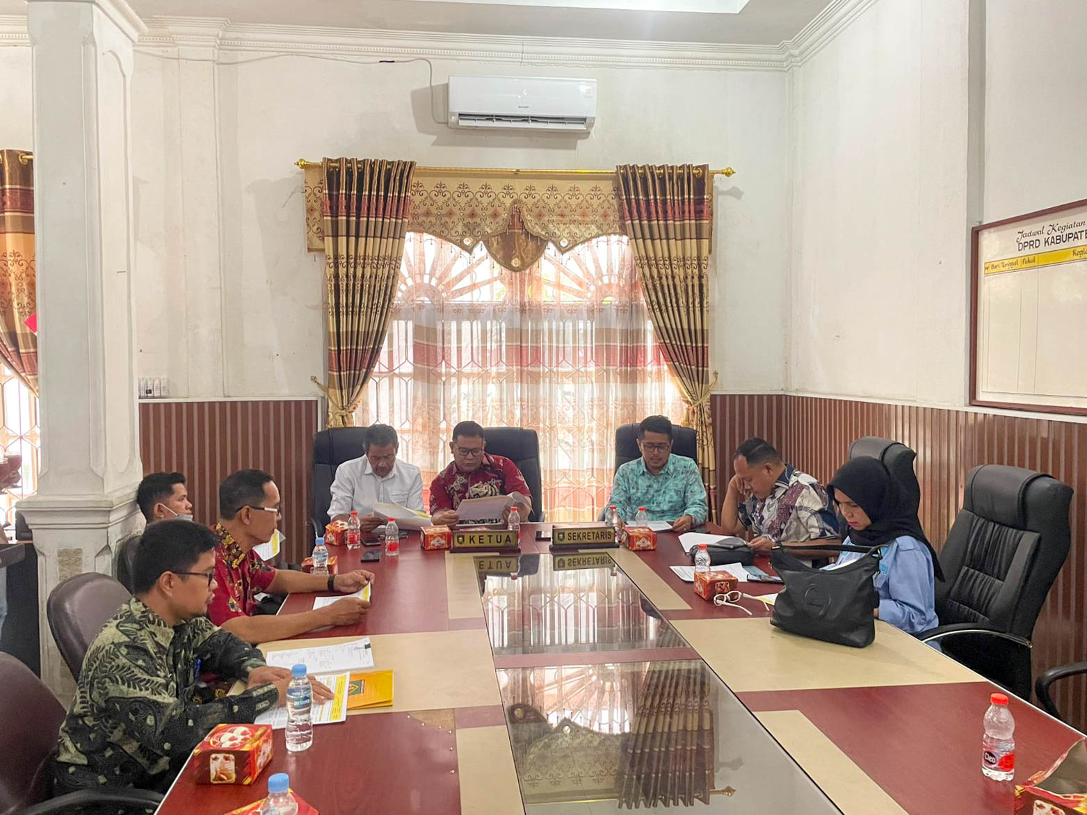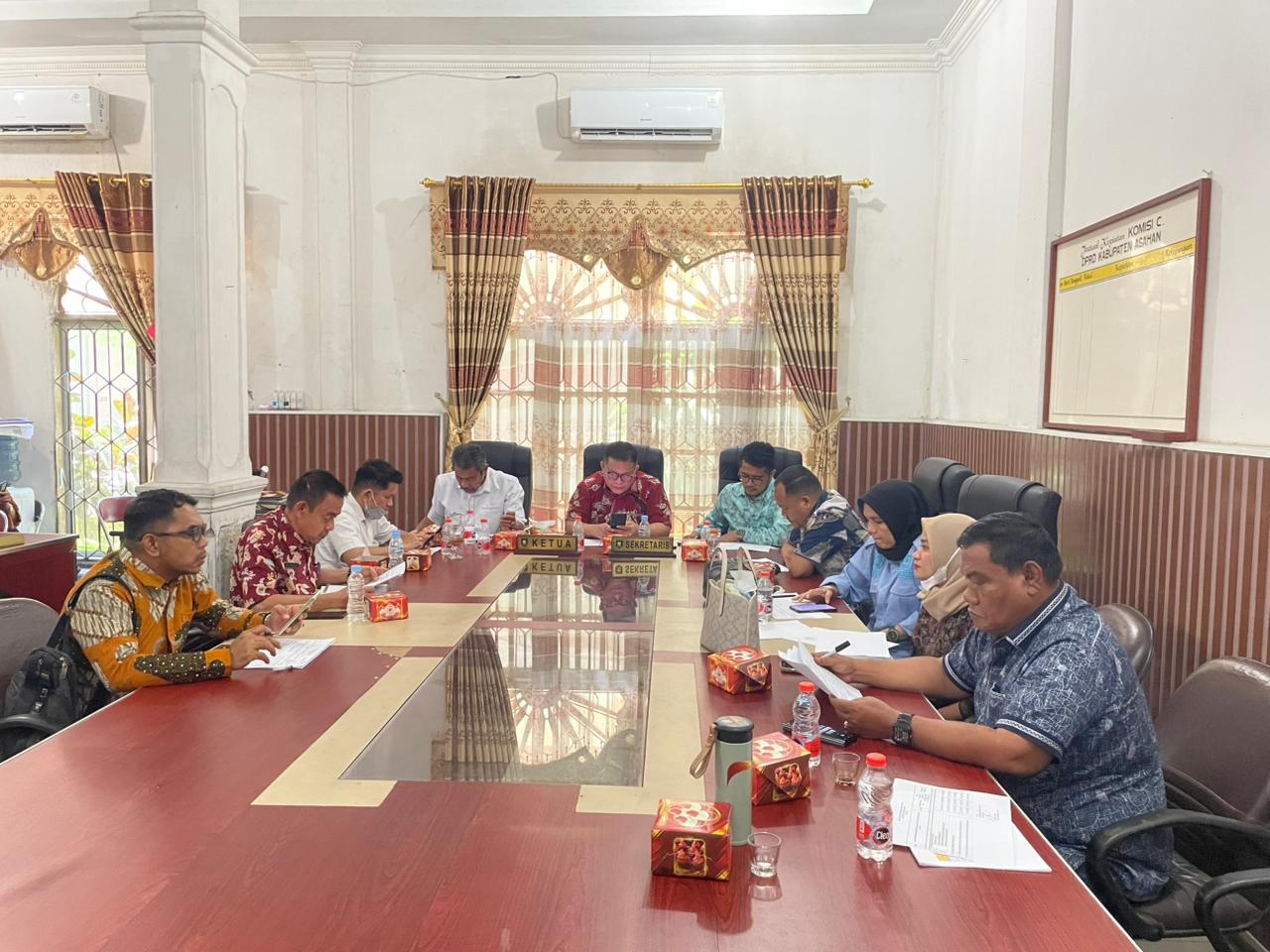 Rapat dipimpin langsung oleh Ketua Komisi C, Kiki Komeni, S.E., bersama dengan Koordinator Komisi C, Rosmansyah, STP., serta didampingi oleh Wakil Ketua Komisi C, Zaharuddin, S.E., dan Sekretaris Komisi C, Satria Bakti Sihombing, S.H., M.H., serta diikuti oleh Anggota Komisi C DPRD Kabupaten Asahan bersama dengan Inspektorat Daerah, Bagian Umum Setdakab. Asahan, Bagian Organisasi Setdakab. Asahan, Bagian Kesejahteraan Rakyat Setdakab. Asahan, Bagian Pemerintahan Setdakab. Asahan, Bagian Administrasi Pembangunan Setdakab. Asahan, Bagian Perencanaan dan Keuangan Setdakab. Asahan, dan Bagian Pengadaan Barang dan Jasa Setdakab. Asahan serta pihak terkait lainnya.