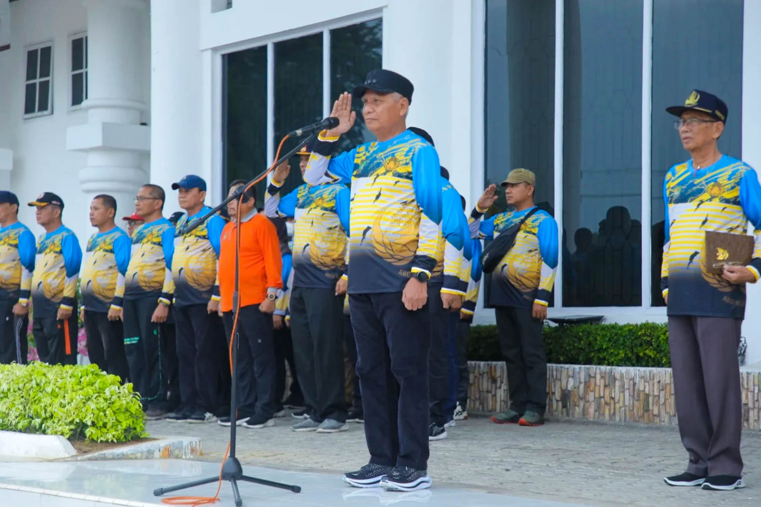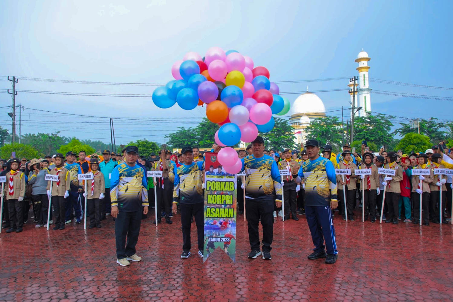 KISARAN - Ketua KORPRI unit Sekretariat DPRD Kabupaten Asahan Ir. Roger Situmorang bersama Kontingen Sekretariat DPRD mengikuti Pembukaan Pekan Olahraga Kabupaten KORPRI Asahan tahun 2023 di halaman Kantor Bupati Asahan, Kamis (12/10/2023).