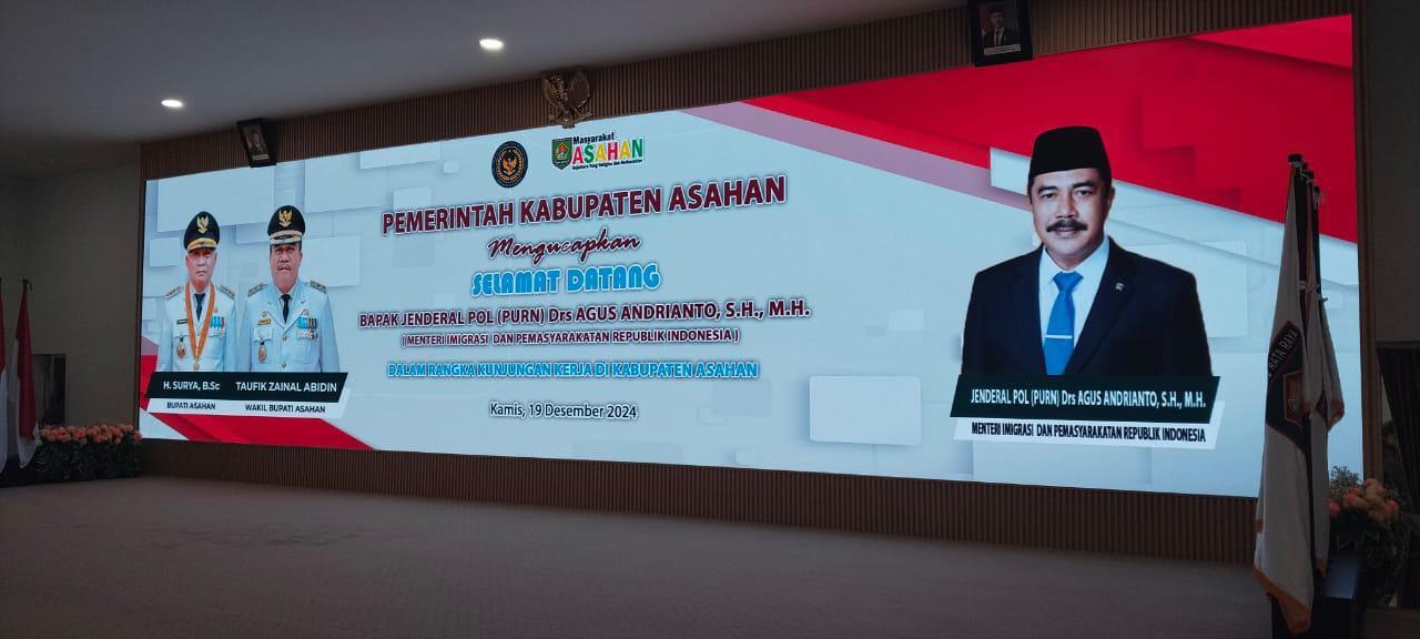 ASAHAN, dprd.asahankab.go.id – Ketua DPRD Kabupaten Asahan, H. Efi Irwansyah Pane, M.K.M., menghadiri acara penyambutan kunjungan kerja Menteri Imigrasi dan Pemasyarakatan Republik Indonesia, Jenderal Polisi (Purn.) Agus Andrianto, S.H., M.H., beserta rombongan pada Kamis (19/12/2024) di Aula Melati Kantor Bupati Asahan, Kabupaten Asahan di Kabupaten Asahan.