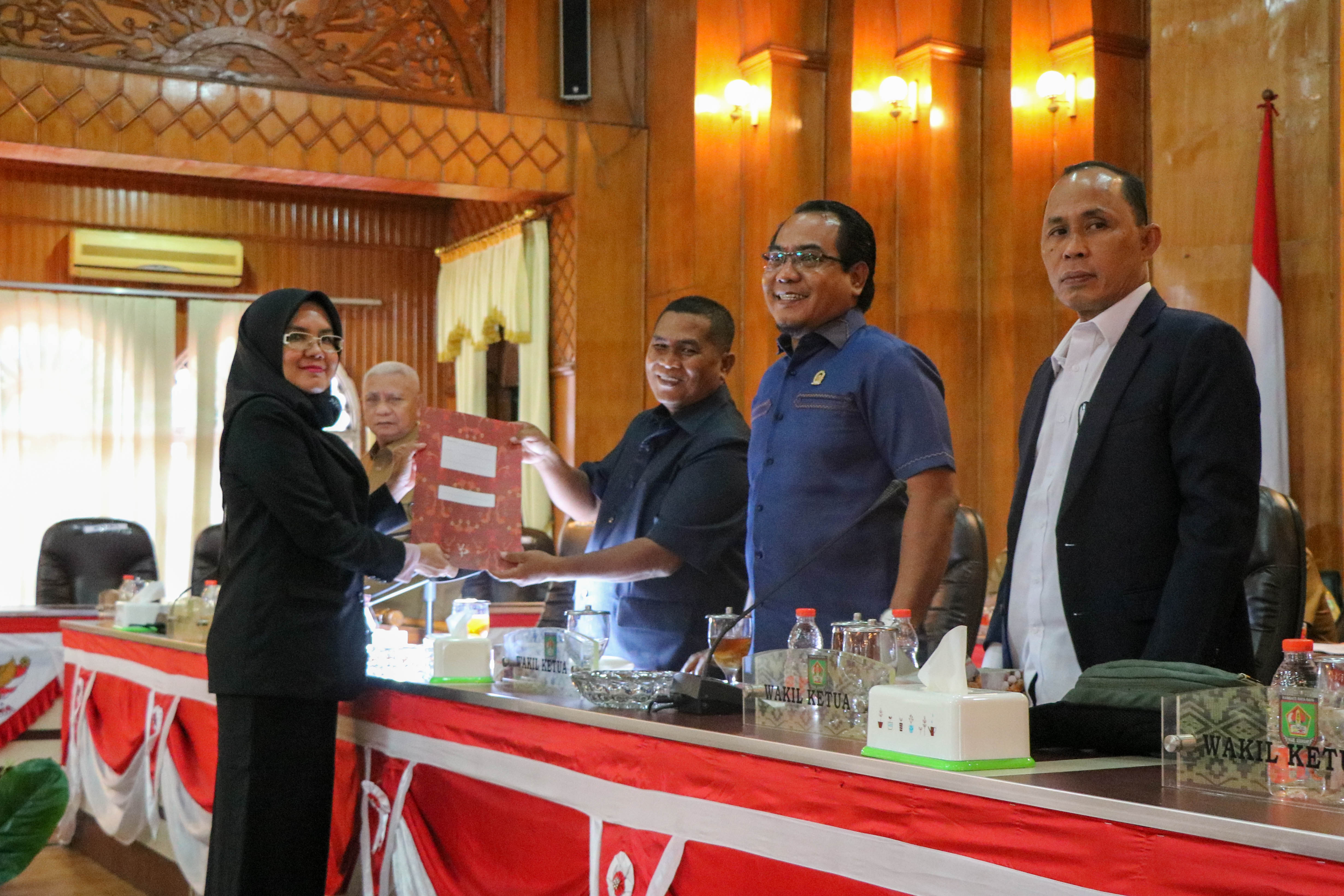 KISARAN - Selasa (26/9/2023), Badan Anggaran DPRD Kabupaten Asahan menyampaikan Laporan Hasil Pembahasan Rancangan Peraturan Daerah tentang Perubahan APBD Tahun Anggaran 2023 , di Aula Rambate Rata Raya, lantai dua Kantor DPRD Kabupaten Asahan.