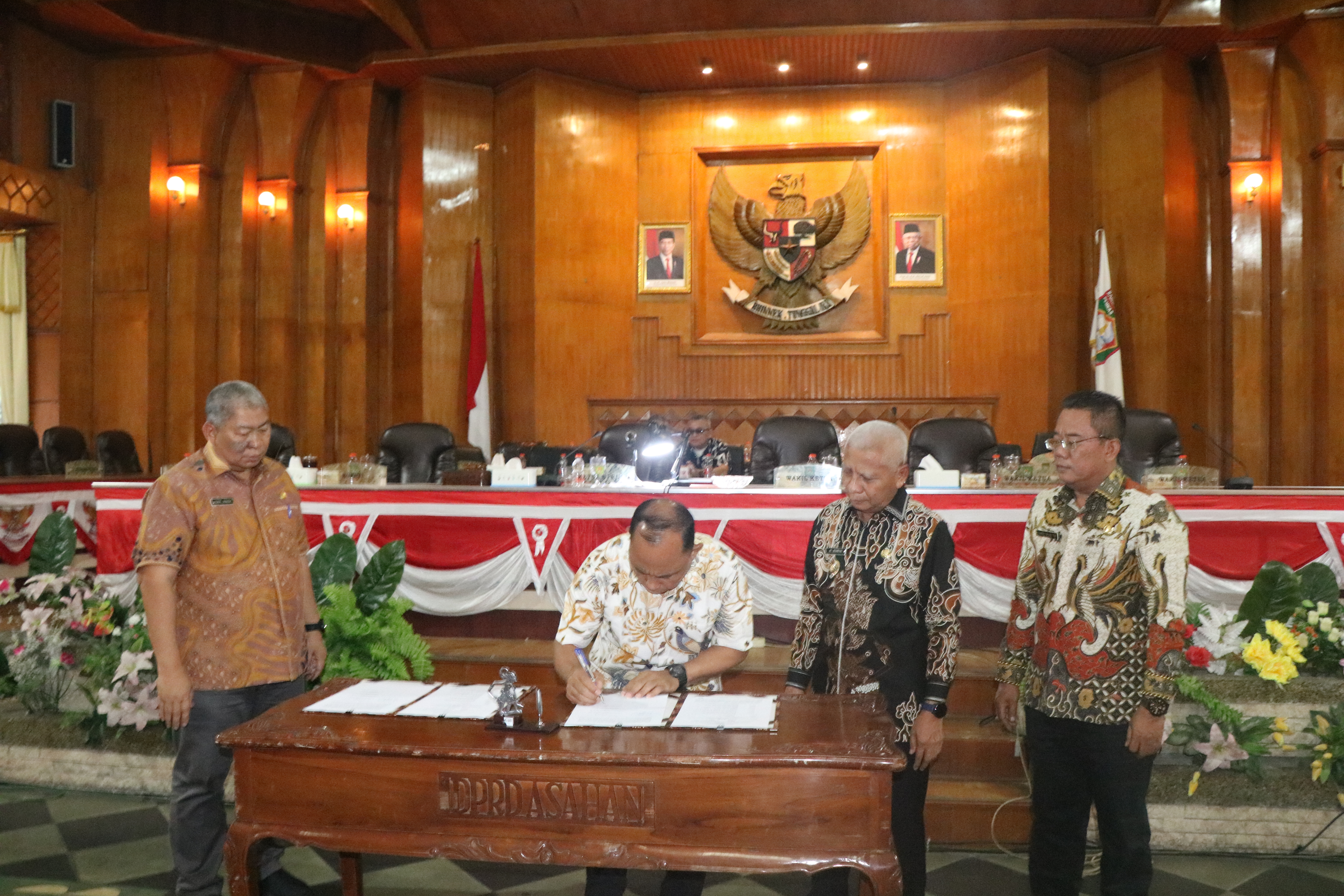 KISARAN - DPRD Kabupaten Asahan menggelar Rapat Paripurna dalam acara dalam acara Penandatanganan Nota Kesepakatan Rancangan Kebijakan Umum Perubahan Anggaran (R-KUPA) dan Prioritas Plafon Anggaran Sementara (R-PPAS) Perubahan T.A. 2024, di Aula Rambate Rata Raya, gedung DPRD Kabupaten Asahan, Jum'at (26/7/2024).