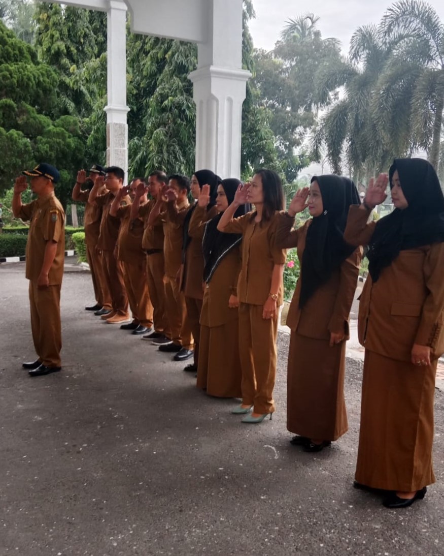 KISARAN - Kabag Program dan Keuangan Sekretariat DPRD Kabupaten Asahan Ir. Roger Situmorang memimpin apel pagi di halaman kantor DPRD Kabupaten Asahan, Senin (10/6/2024).