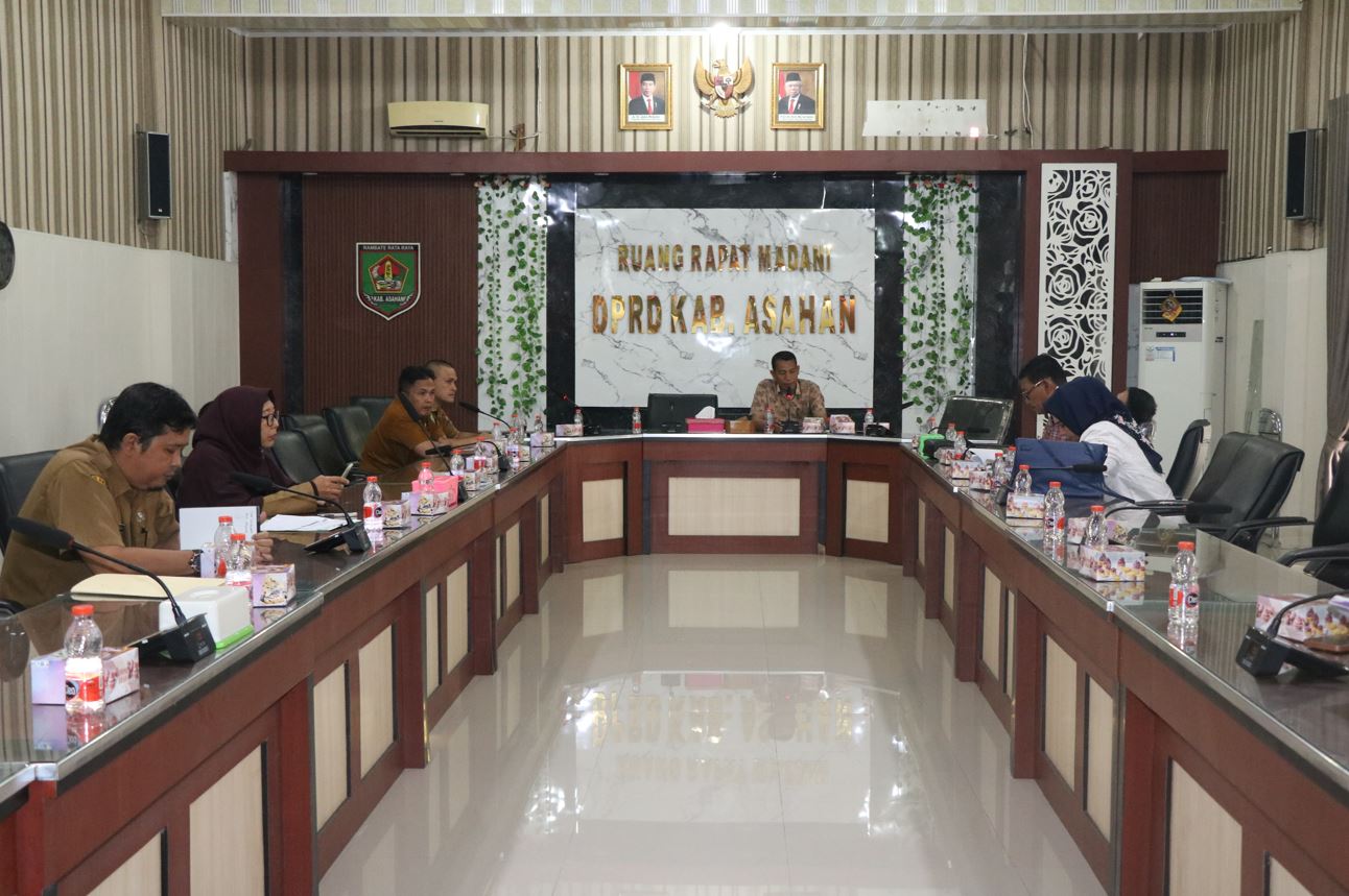 KISARAN - Panitia Khusus DPRD Kabupaten Asahan bersama OPD Kabupaten Asahan menggelar rapat pembahasan Laporan Keterangan Pertanggungjawaban (LKPJ) Kepala Daerah Tahun Anggaran 2023 oleh Bupati Asahan di di Ruang Rapat Madani lantai satu kantor DPRD Kabupaten Asahan pada Selasa (30/4/2024).