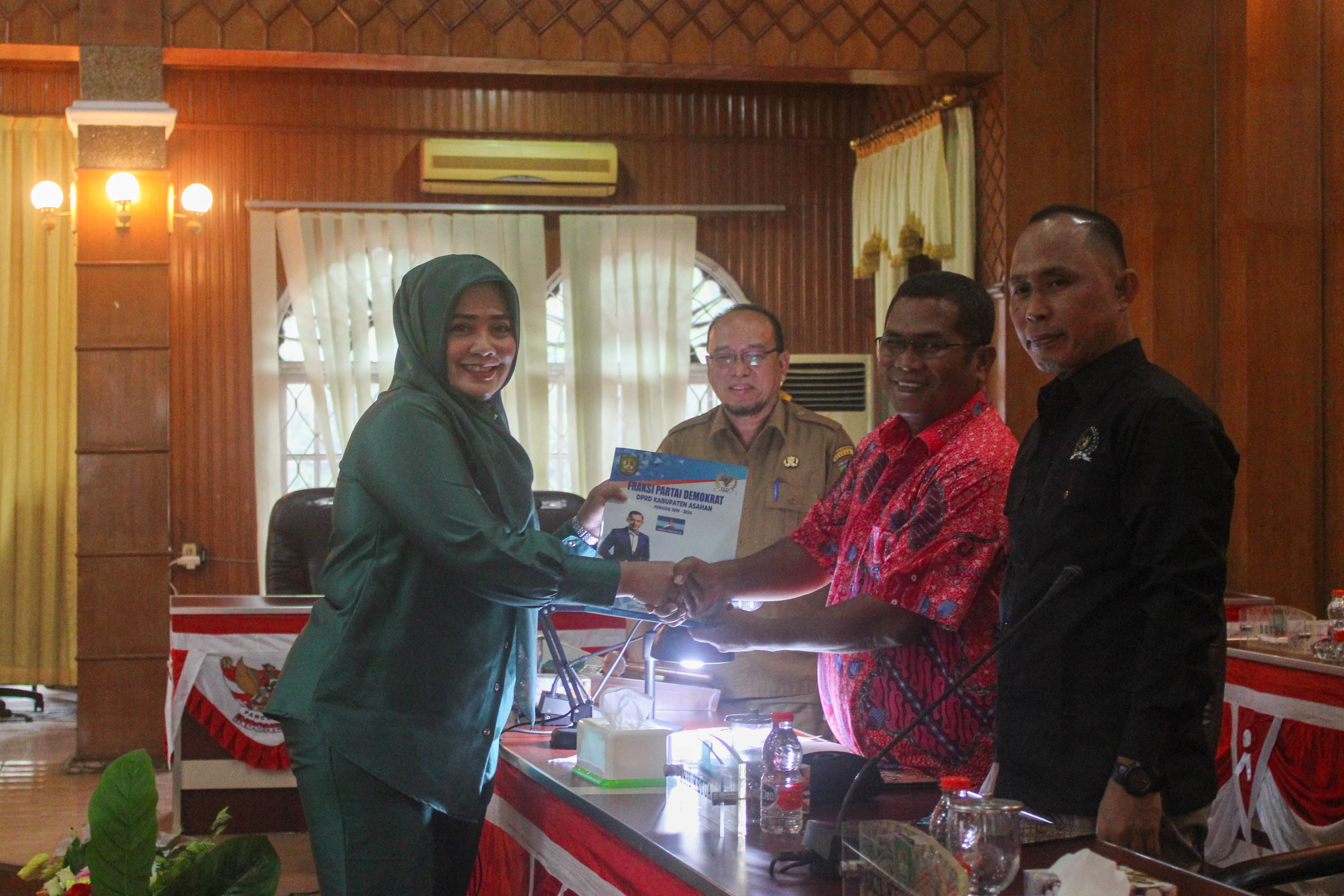 Mewakili Fraksi Partai Demokrat dalam menyampaikan jawaban Fraksinya yakni Lela Sari Sinaga, S.Sos dan Drs. H. Sapariman mewakili Fraksi PAN.