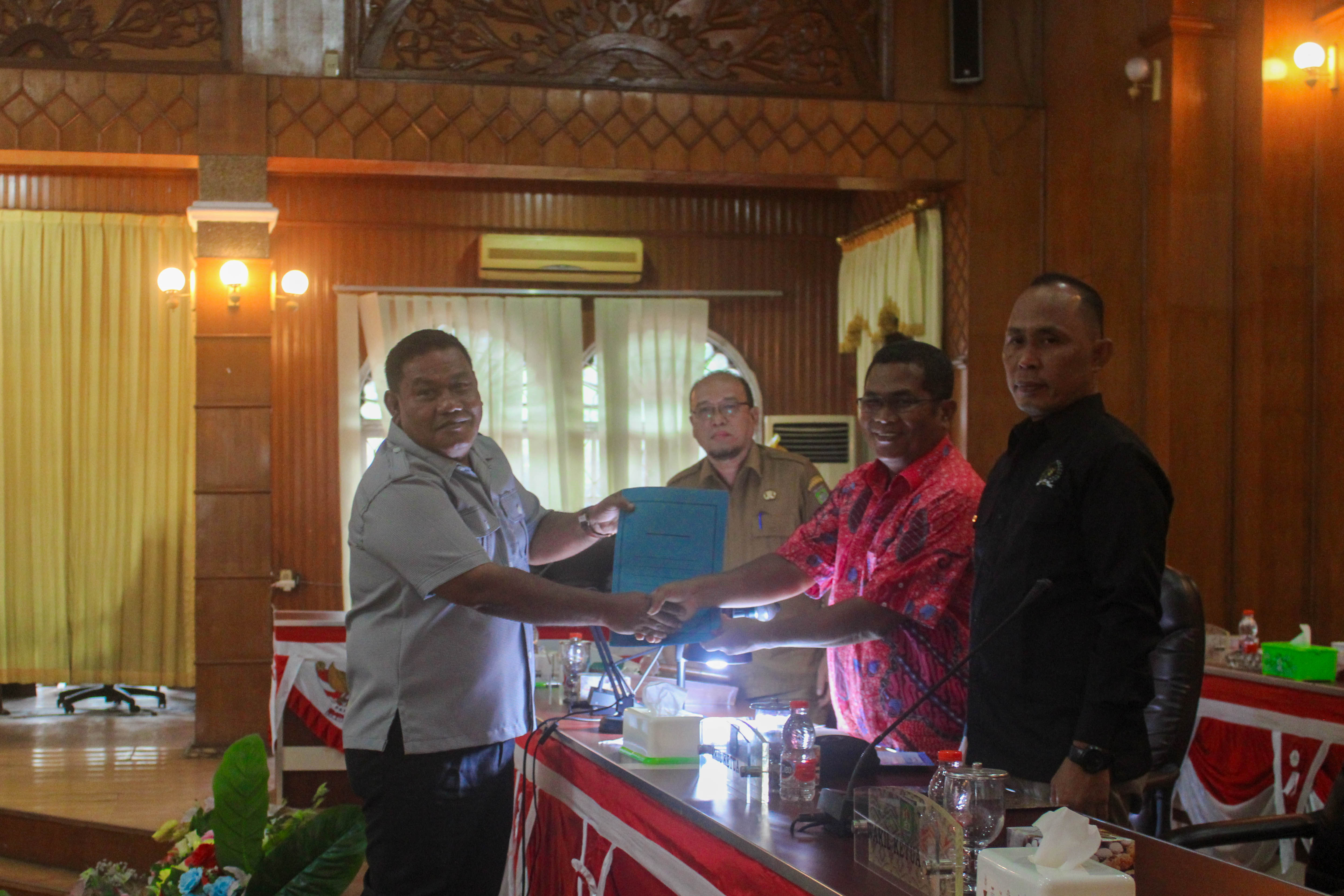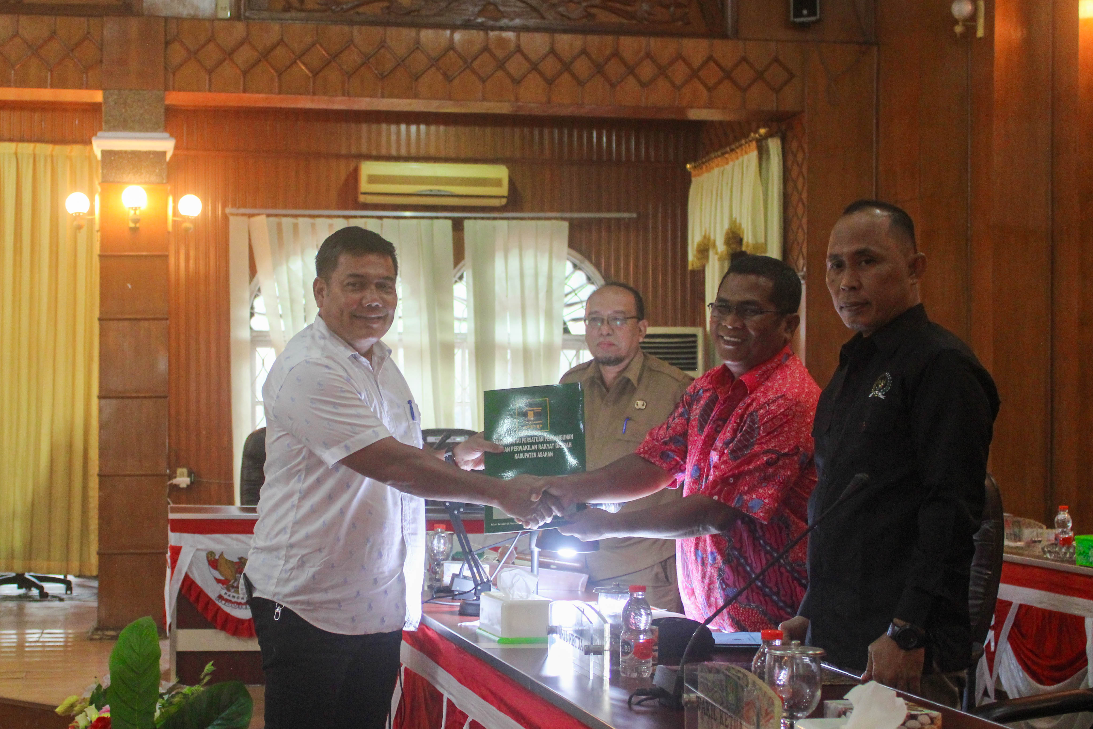 KISARAN - DPRD Kabupaten Asahan menggelar Rapat Paripurna dalam acara Jawaban Fraksi terhadap Pendapat Bupati Asahan atas Rancangan Perda Kabupaten Asahan yang berasal dari DPRD sekaligus pembentukan Panitia Khusus di Aula Rambate Rata Raya, lantai dua Kantor DPRD Kabupaten Asahan pada Selasa (17/10/2023).