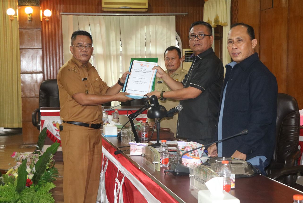 KISARAN - DPRD Kabupaten Asahan menggelar Rapat Paripurna dalam acara Jawaban Fraksi Terhadap Pendapat Bupati Asahan Atas 3 (tiga) Ranperda yang berasal dari DPRD Sekaligus Pembentukan Panitia Khusus di Aula Rambate Rata Raya, lantai dua Kantor DPRD Kabupaten Asahan pada Senin (13/5/2024).