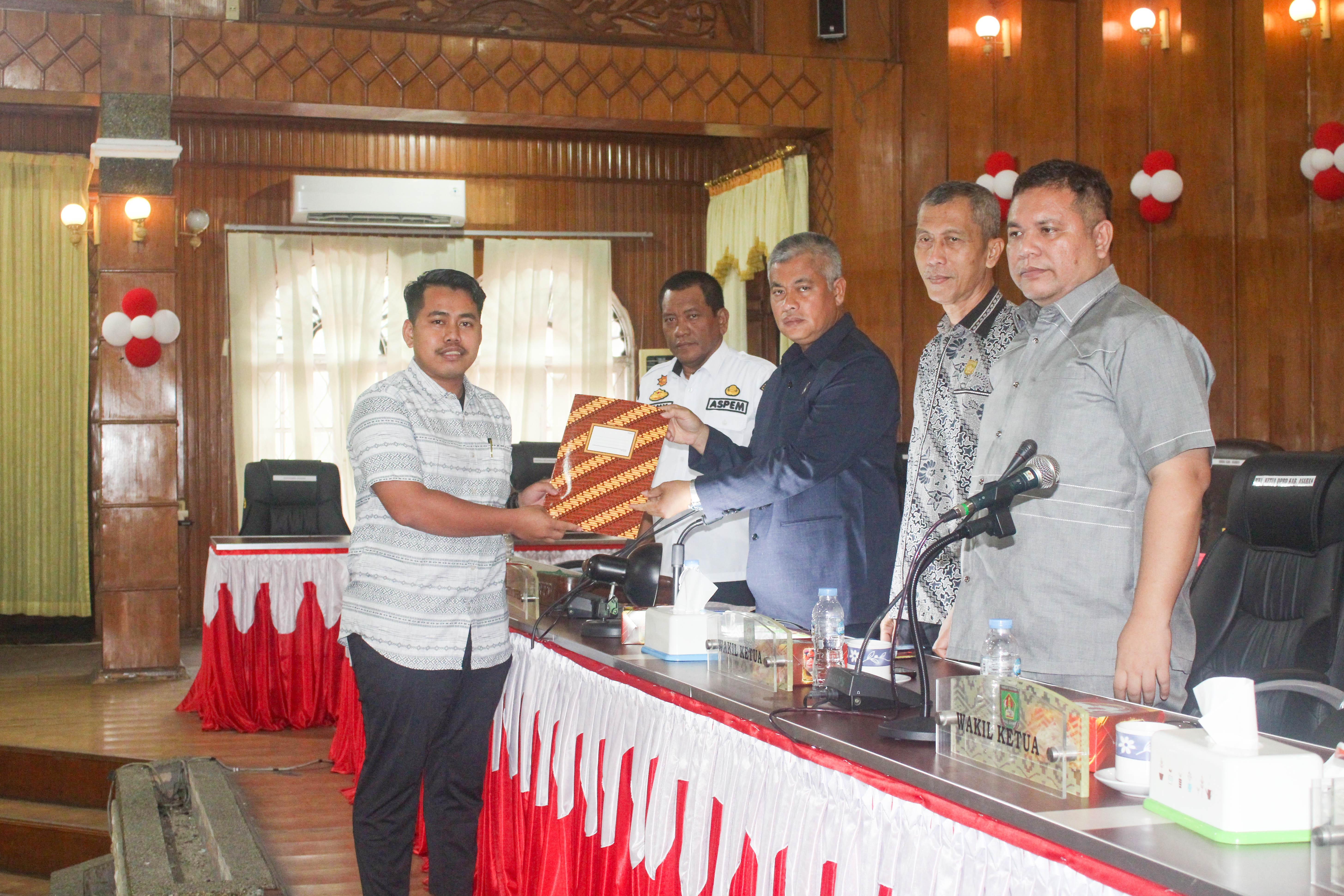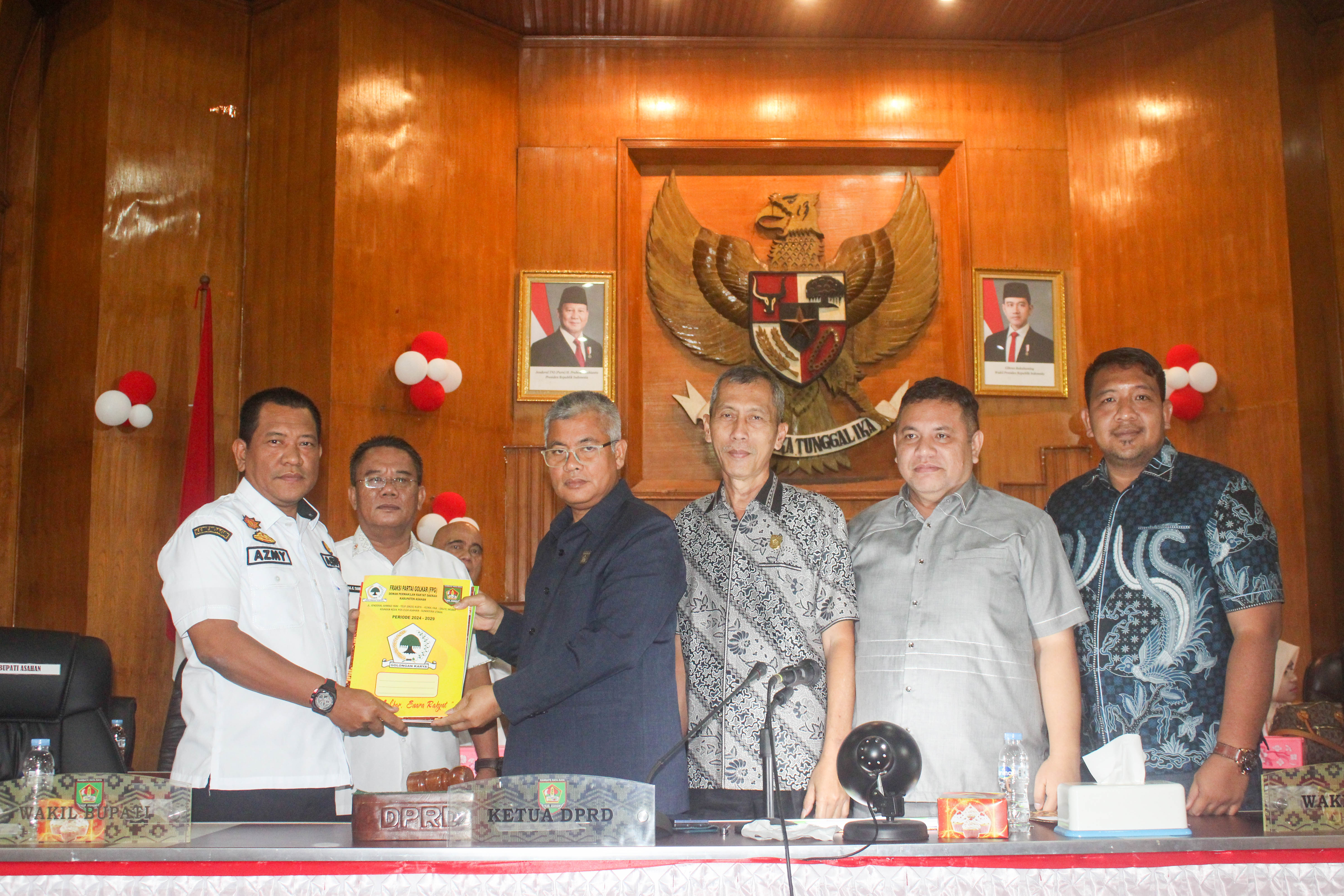 Ketua DPRD Asahan H. Efi Irwansyah Pane, M.K.M., memimpin langsung rapat paripurna dengan didampingi oleh para Wakil Ketua DPRD Asahan, Nazaruddin, S.H., Rosmansyah, S.TP dan Joko Panjaitan serta dihadiri oleh Anggota DPRD Kabupaten Asahan. Tampak hadir mewakili Bupati Asahan oleh Asisten Pemerintahan dan Kesejahteraan Rakyat Sekretariat Daerah Kabupaten Asahan, Mohammad Azmy Ismail, A.P., M.Si., Staf Ahli Bupati, Asisten Setdakab Asahan, Kepala OPD se-Kabupaten Asahan, para Kabag Setdakab Asahan, serta undangan lainnya.