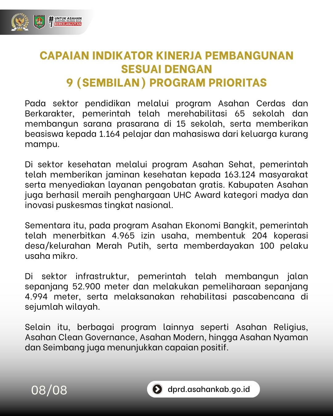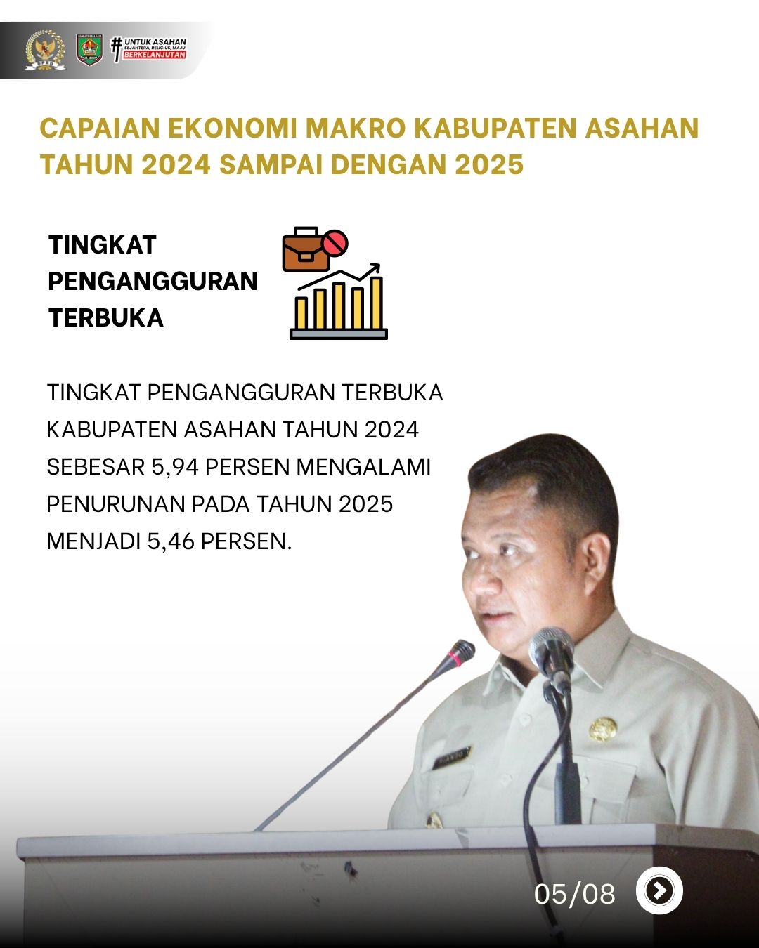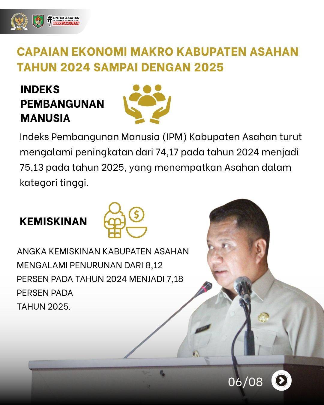 Bupati Asahan melalui Wakil Bupati Asahan, Rianto, S.H., M.A.P., menyampaikan pidato dalam rangka Laporan Keterangan Pertanggungjawaban (LKPJ) Bupati Asahan Tahun Anggaran 2025 yang memuat capaian indikator makro, realisasi keuangan, serta progres 9 program prioritas pembangunan daerah.