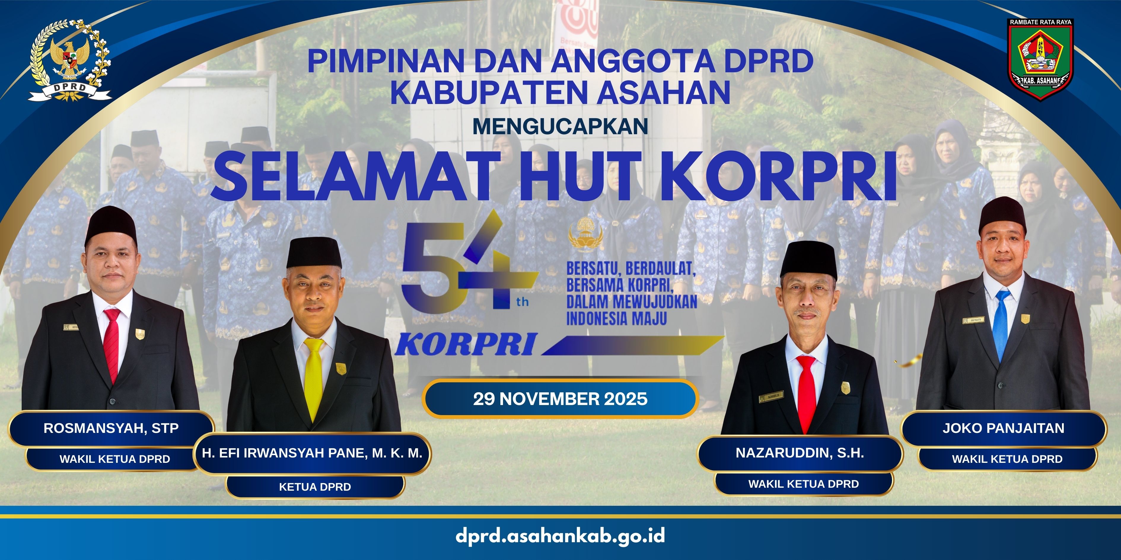 dprd.asahankab.go.id, Kisaran,- Pimpinan dan Anggota DPRD Kabupaten Asahan menyampaikan penghargaan yang setinggi-tingginya kepada seluruh anggota KORPRI yang selama ini menjadi garda terdepan dalam memastikan pelayanan pemerintah berjalan efektif, profesional, dan berorientasi pada kepentingan masyarakat.