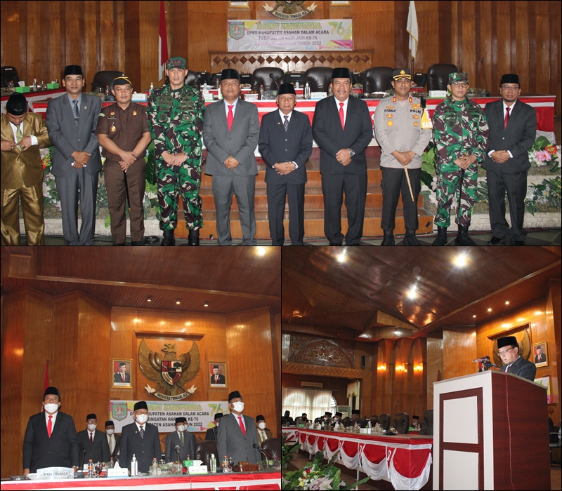 Hadir dalam sidang Paripurna Hari Jadi Kabupaten Asahan ke 75 yaitu, Bupati Asahan (H. SURYA Bsc) Wakil Bupati Asahan (TAUFIK ZAINAL ABIDIN, S,Sos, MSi) Ketua DPRD Kabupaten Asahan, H.BAHARUDDIN HARAHAP,SH,MH, FORKOPIMDA Kabupaten Asahan dan serta Anggota DPRD Kabupaten Asahan, Sekretaris Daerah Kabupaten Asahan, Drs. JHON HARDI NASUTION, MSi, dan Organisasi Perangkat Daerah, Dalam Rapat Paripurna Ketua DPRD Kabupaten Asahan menyampaikan, bahwa perayaan hari jadi Kabupaten Asahan ke-75 harus menjadi momen penting dan Evaluasi bersama dalam perjalanan Pemerintah Kabupaten Asahan ke -76 momentum Peringatan Hari jadi Kabupaten Asahan harus menjadi daya dorong dan motivasi bagi seluruh masyarakat dan Pemangku kepentingan dalam membangun daerah ini dengan bekerja cepat, lebih cerdas dalam mewujudkan masyarakat Asahan sejahtera yang religius dan berkarakter.