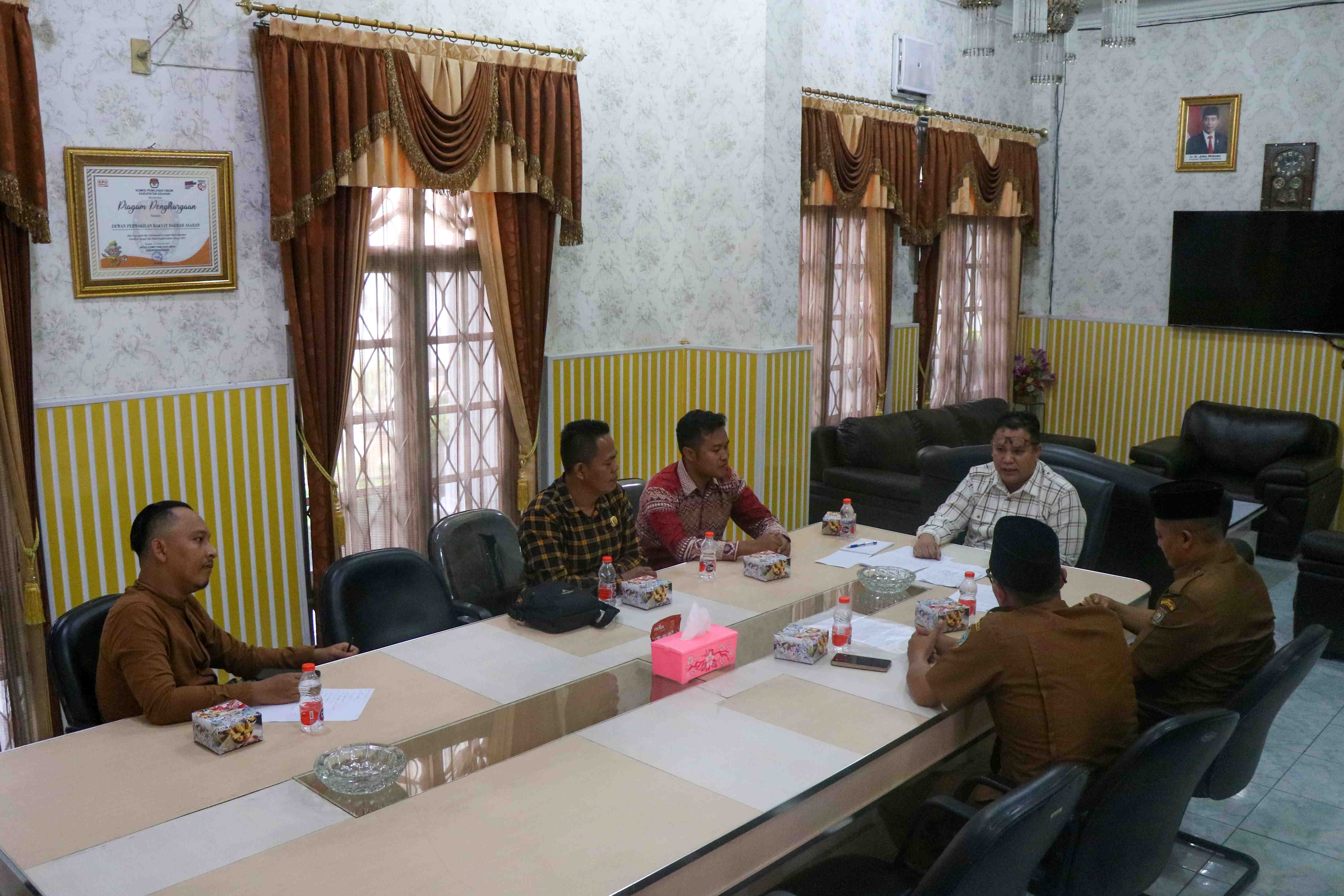 Wakil Ketua DPRD Kabupaten Asahan sementara, Rosmansyah, S.TP., bersama dengan Anggota DPRD Kabupaten Asahan dari Fraksi Partai Gerindra, Suheri, didampingi Pakar DPRD Kabupaten Asahan Al Ghazali Siregar, S.Kom.I menerima Perwakilan Guru Pendidikan Agama Islam Kabupaten Asahan.