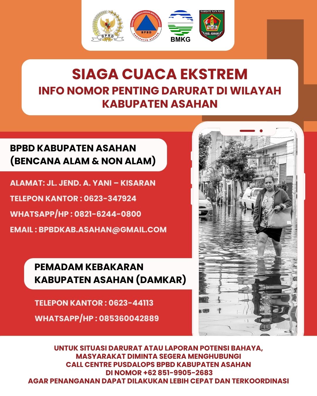 Info Nomor Penting Darurat di Wilayah Kabupaten Asahan dalam rangka siaga cuaca ekstrem Siklon Tropis Selayar di Provinsi Sumatera Utara.