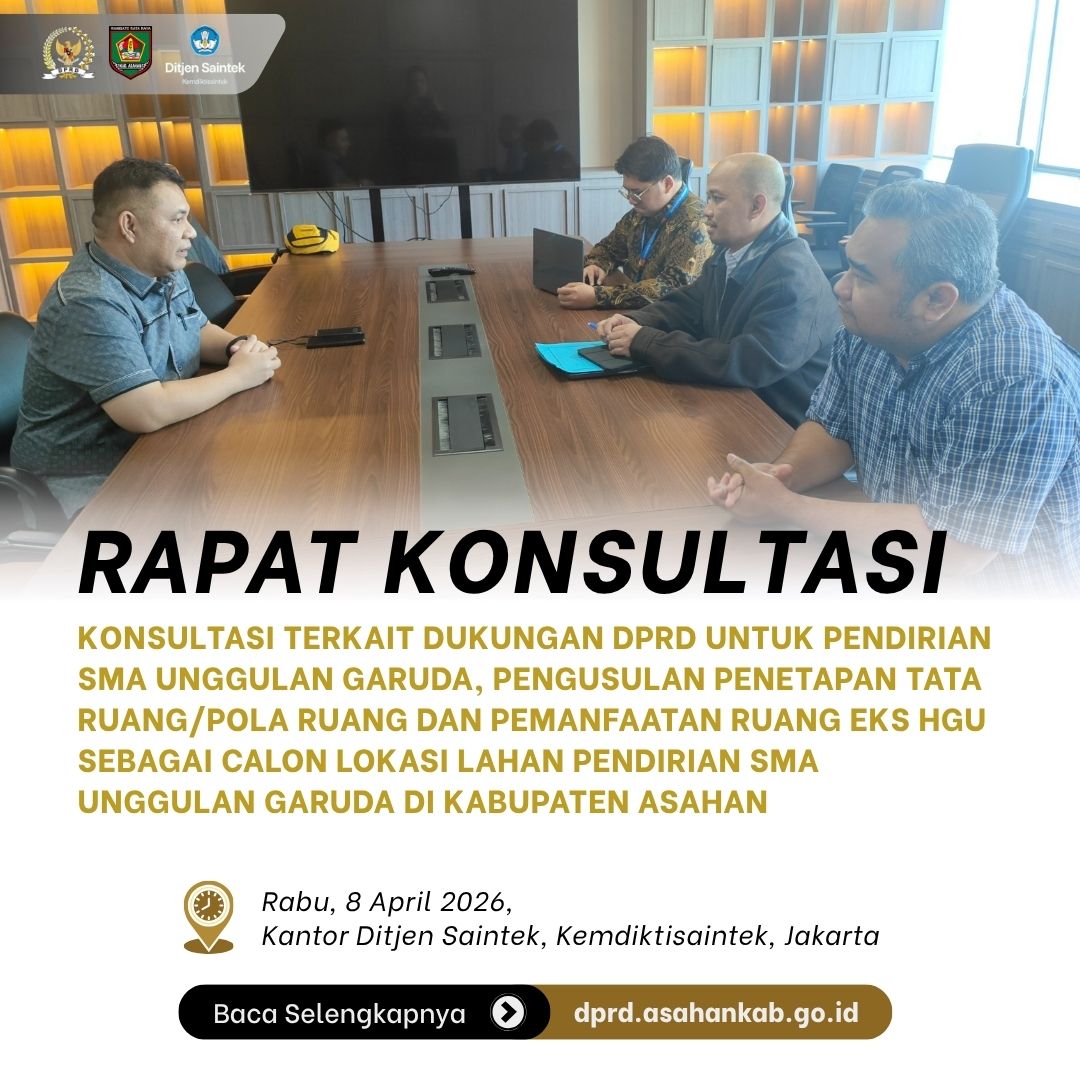Jakarta, dprd.asahankab.go.id Dalam upaya mewujudkan pemerataan pendidikan berkualitas di daerah , Wakil Ketua DPRD Kabupaten Asahan, Rosmansyah, STP., melakukan kunjungan konsultasi ke Kantor Ditjen Saintek, Kemendiktisaintek, Jakarta, Rabu (8/4/2026).