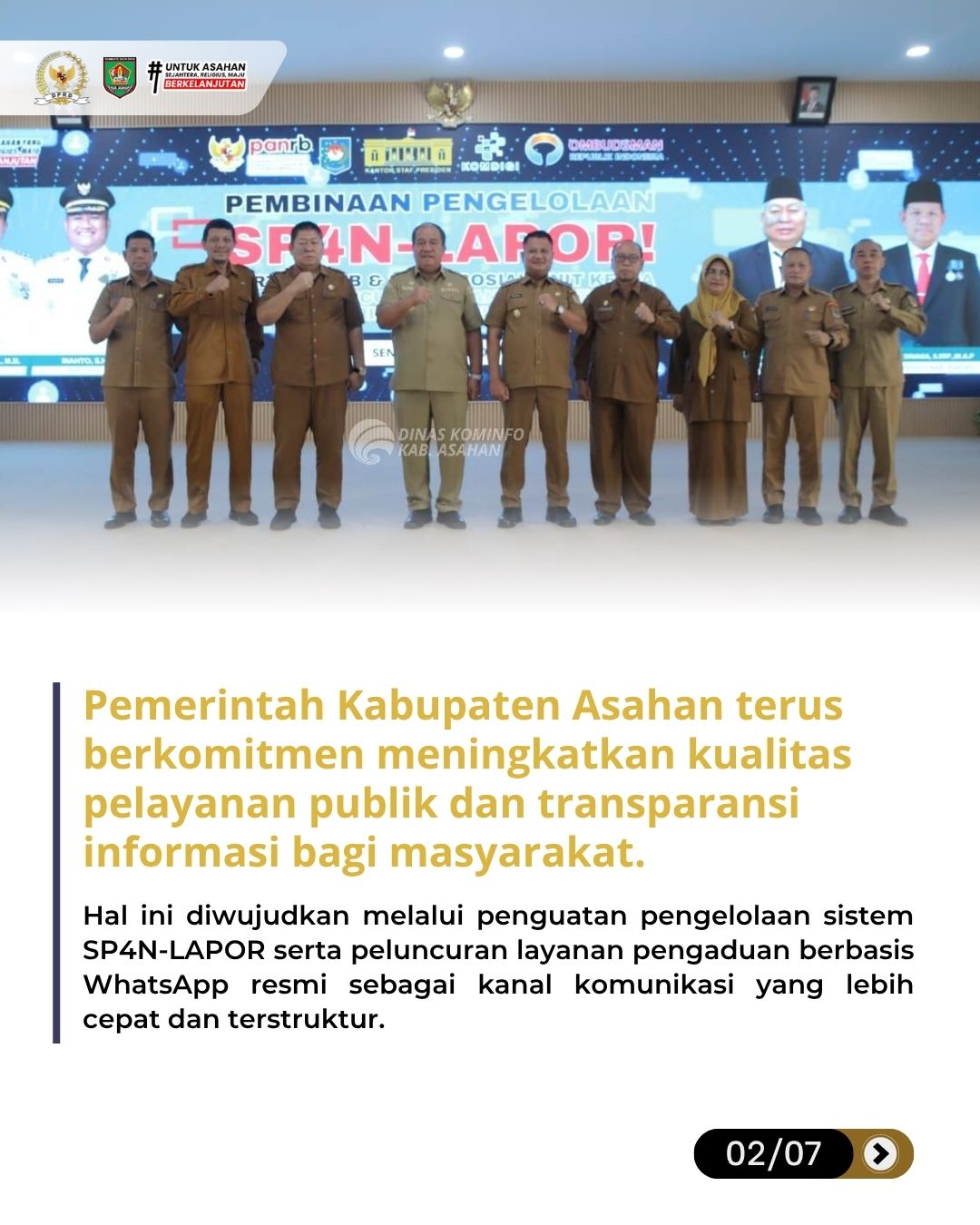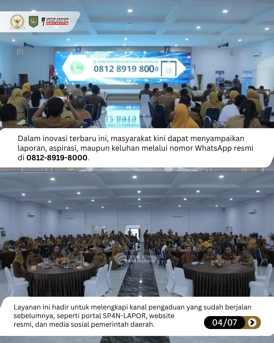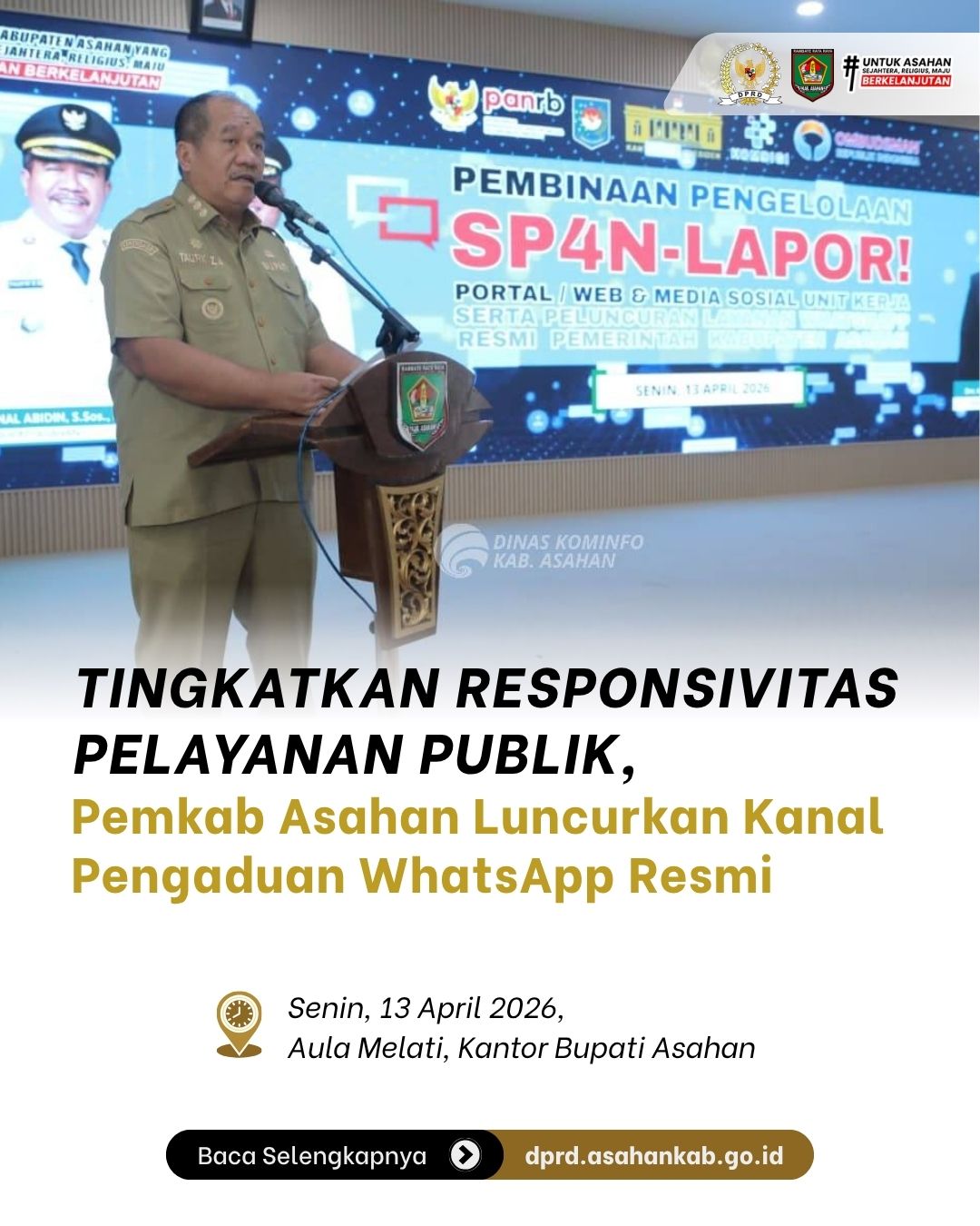 Kisaran, dprd.asahankab.go.id - Pemerintah Kabupaten Asahan terus berkomitmen meningkatkan kualitas pelayanan publik dan transparansi informasi bagi masyarakat. Hal ini diwujudkan melalui penguatan pengelolaan sistem SP4N-LAPOR serta peluncuran layanan pengaduan berbasis WhatsApp resmi sebagai kanal komunikasi yang lebih cepat dan terstruktur.